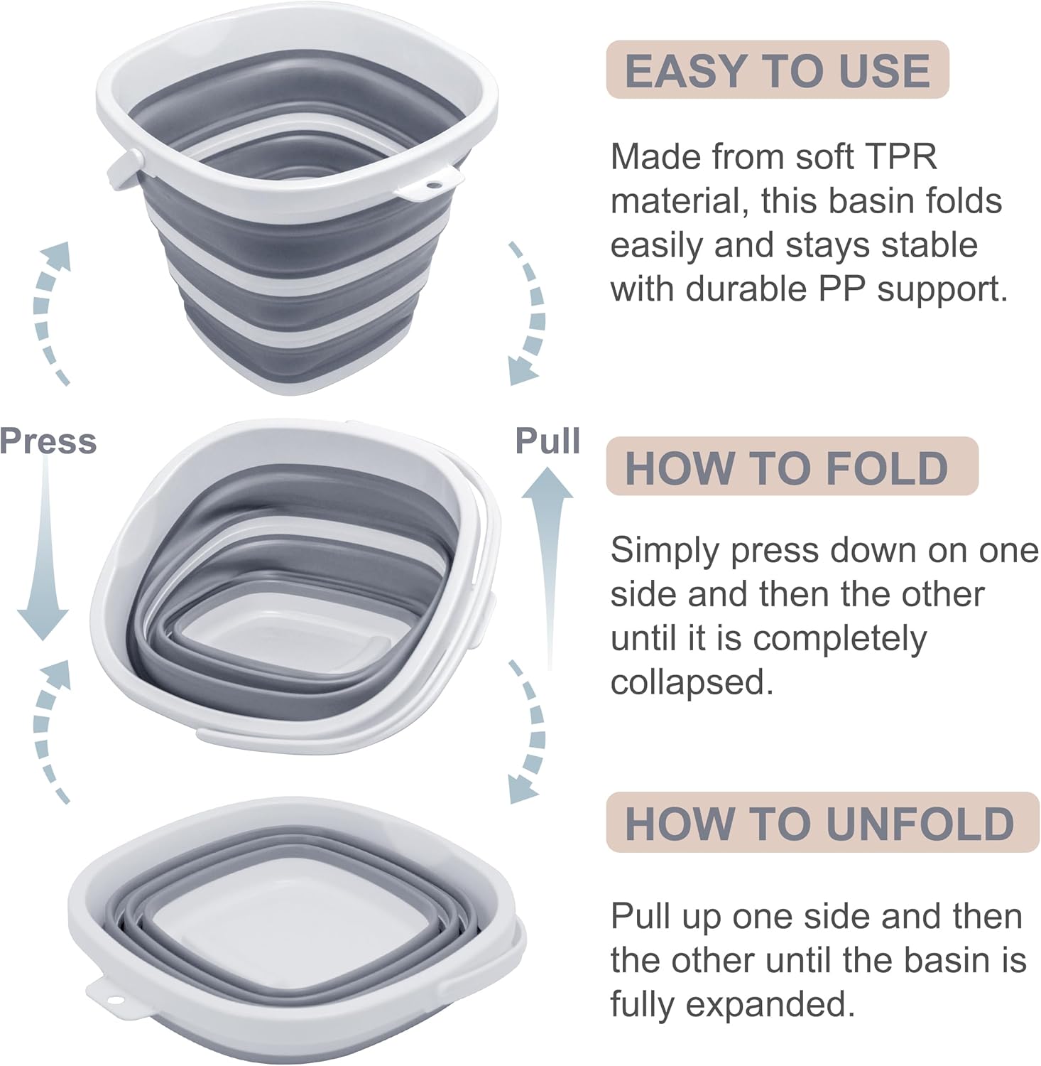 10L Collapsible Foot Soak Tub – Portable Folding Foot Bath Basin for Home, Travel, Camping – 2.6 Gallon Large Capacity Wash Basin with Handle and Hook